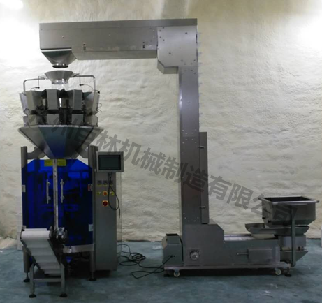 *本機與10頭電子組合秤配套在一起,可自動完成計量、送料、充填制袋、日期打印的全部包裝過程;